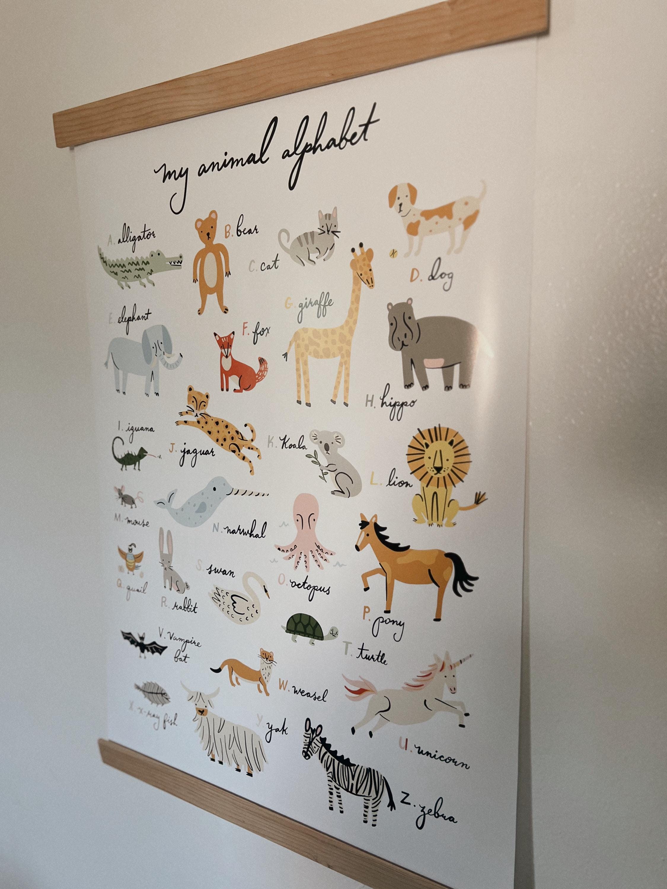 This 'Animal Alphabet' illustration is a beloved classic we've offered in our shop (and still do) as both a paper art print & canvas banner, available here as an instant digital download. No physical product will ship with this order - if you'd prefer we handle the printing & shipping, please revisit our shop for the appropriate listing. We are not able to offer refunds/returns for purchasing this listing by mistake.